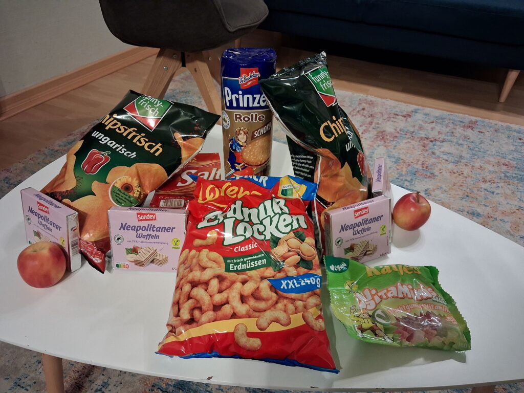 Nach dem Abendessen des 2. Turniertages, also nach 4 von 7 Runden, kam dann unser traditionelles Bergfest, das machen wir schon immer, also schon das 2. Mal 😉. Daher wurde das auch vom Team vehement eingefordert, damit es auch tatsächlich stattfindet. Also machte sich der Trainer bei vereisten Straßen auf den Weg in den in der Nähe gelegenen Supermarkt und besorgte das ein oder andere Knabberzeug.